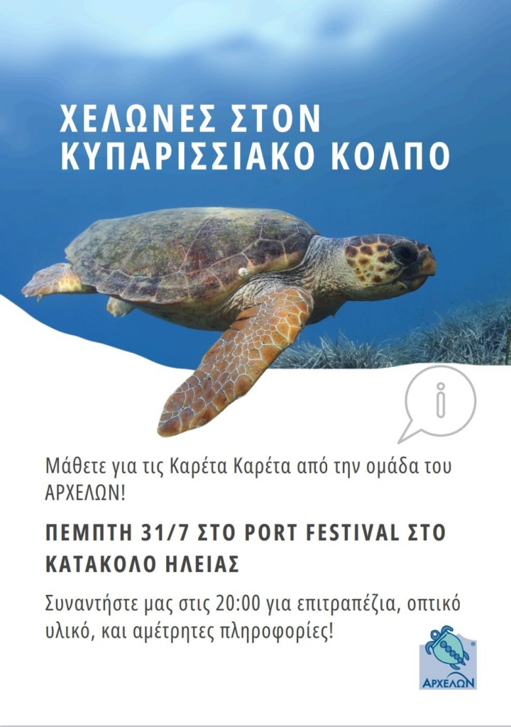 Μέσα από διαδραστικά παιχνίδια, οπτικοακουστικό υλικό και έντυπες ενημερώσεις, η ομάδα του ΑΡΧΕΛΩΝ θα μας γνωρίσει από κοντά τον κόσμο της Καρέτα Καρέτα, της θαλάσσιας χελώνας που φωλιάζει κάθε χρόνο στις ακτές της χώρας μας και φυσικά στην Ηλεία.