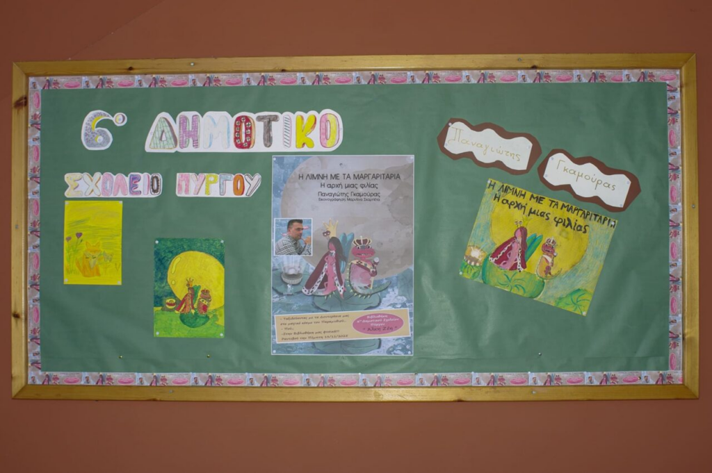 Η ομάδα της βιβλιοθήκης είχε τυπώσει σελιδοδείκτες από το ομώνυμο βιβλίο, τους οποίους χάρισε στα παιδιά και στον συγγραφέα. Ο διευθυντής του σχολείου, Νίκος Κουσάβελος, και η ομάδα της βιβλιοθήκης ευχαρίστησαν θερμά τον Παναγιώτη Γκαμούρα, προσφέροντάς του κρασιά από το «Κτήμα Μπριντζίκη – Διονύσιος Μπριντζίκης», χορηγία του παραγωγού.